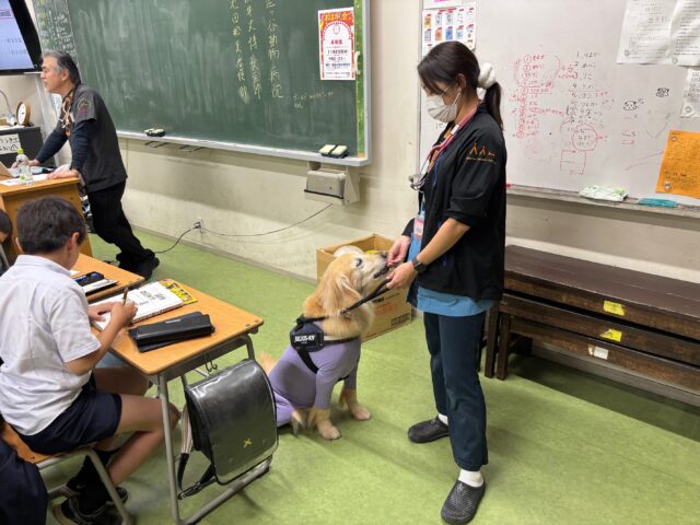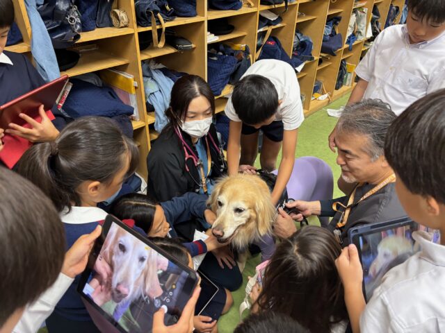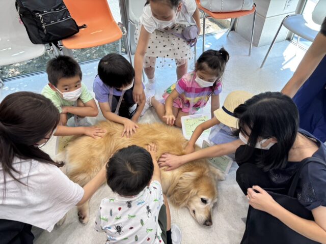 病院で緊急時の献血犬も務めているゴールデンレトリーバーのリュックとのふれあいなど、